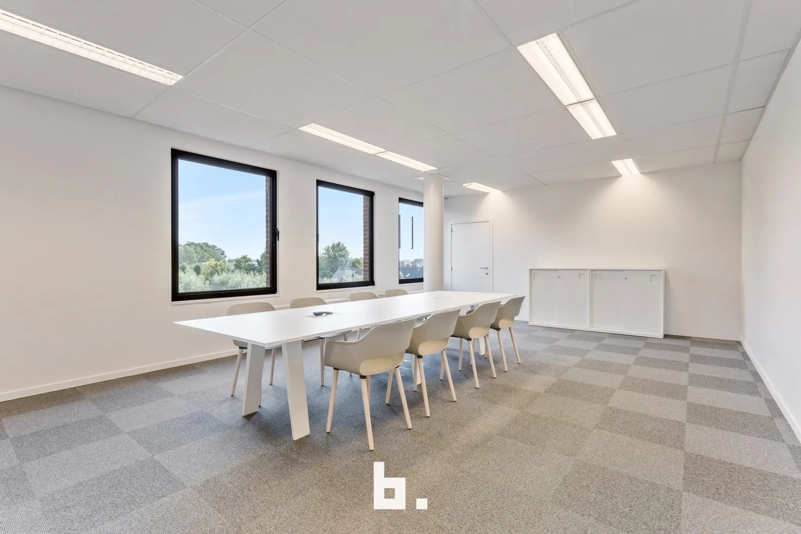 De indeling bestaat uit een ruime open space, perfect voor een flexibel kantoorconcept. Daarnaast beschikt het pand over een gemeenschappelijke inkomhal, sanitaire voorzieningen, en een aparte vergaderzaal voor uw besprekingen. Indien gewenst kan de ruimte verder worden opgedeeld om aan specifieke noden te voldoen.