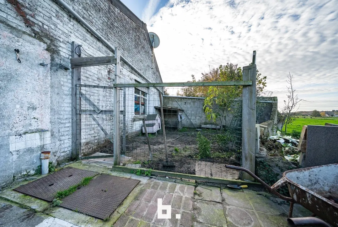 Deze ruime te renoveren woning met veel potentieel bevindt zich in het centrum van Waardamme met uitzicht op de velden. De indeling is als volgt: BENEDENVERDIEPING: Inkomhal, leefruimte, zithoek, keuken, wc, overdekt terras, ruime garage. BOVENVERDIEPING: 4 ruime slaapkamers