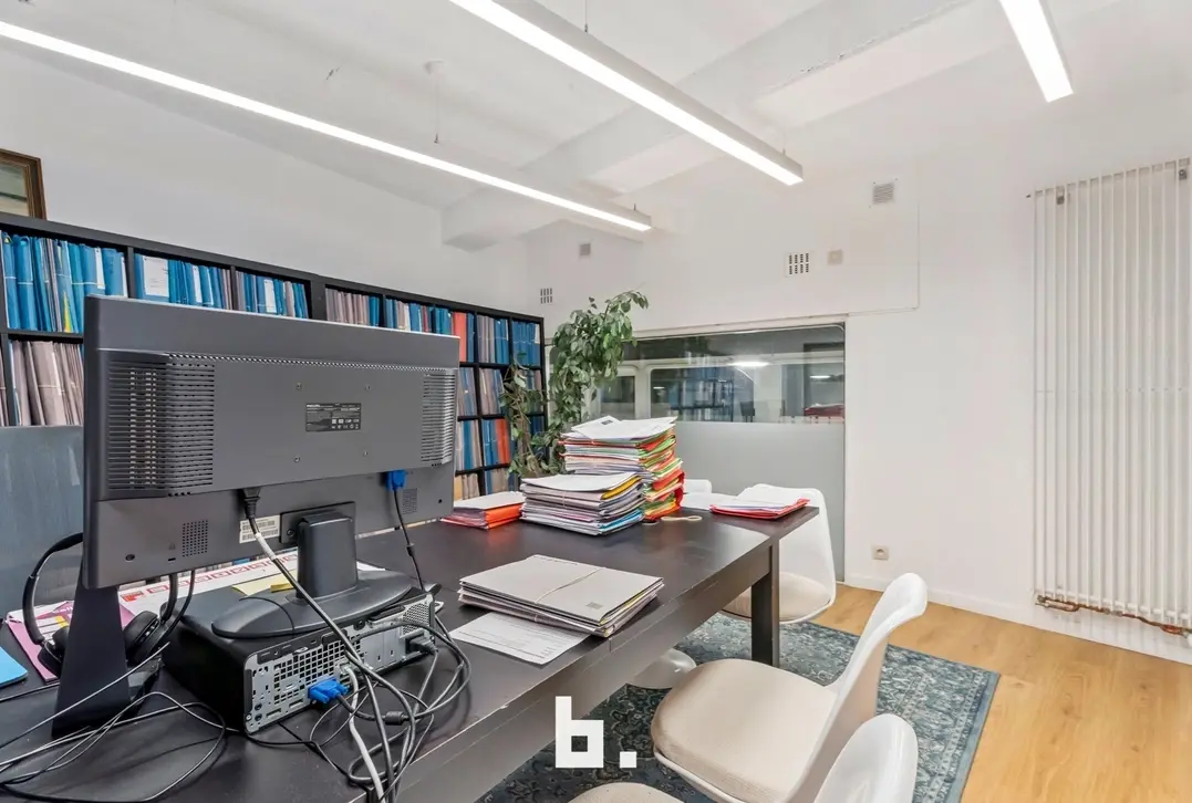 Deze instapklare kantoorruimte van 375 m², verdeeld over twee verdiepingen (gelijkvloers en 1ste verdieping), biedt alle nodige voorzieningen voor een efficiënte en aangename werkomgeving.
