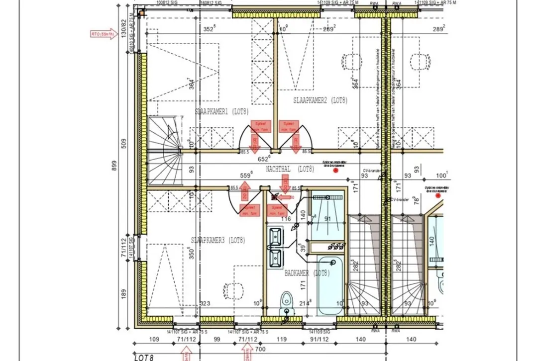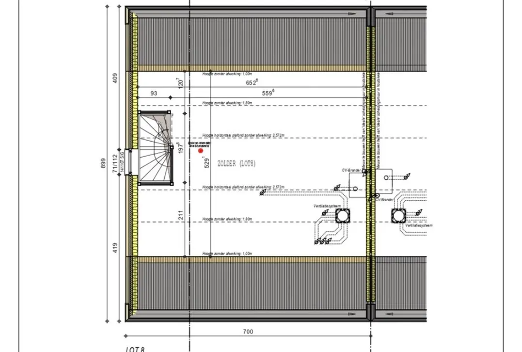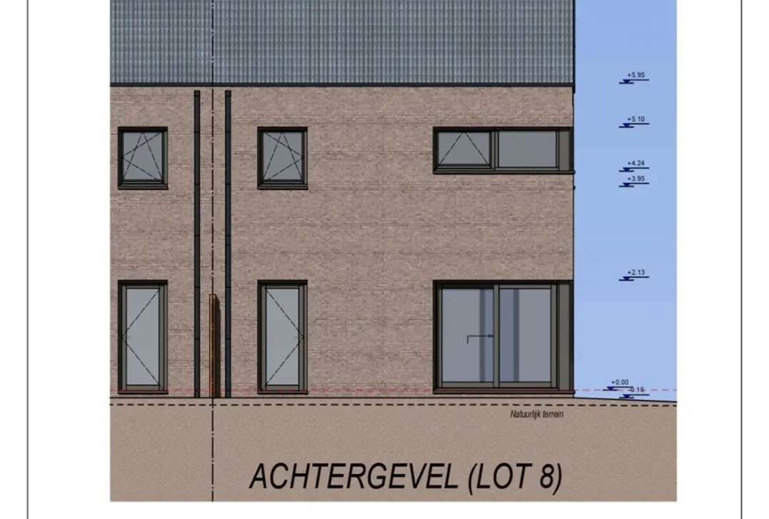 Huisnummer 8 is een halfopen nieuwbouw op een perceel van 263 m² met een bruto bewoonbare oppervlakte van 163 m² verdeeld over 3 bouwlagen. Op het gelijkvloers is er een inkom met gastentoilet, een woonkamer met volledig uitgeruste keuken en een berging die aansluit op de keuken. Op het verdiep zijn er 3 slaapkamers en een badkamer met bad, douche, toilet en lavabo. De grote zolder is toegankelijk via een inklapbare trap.