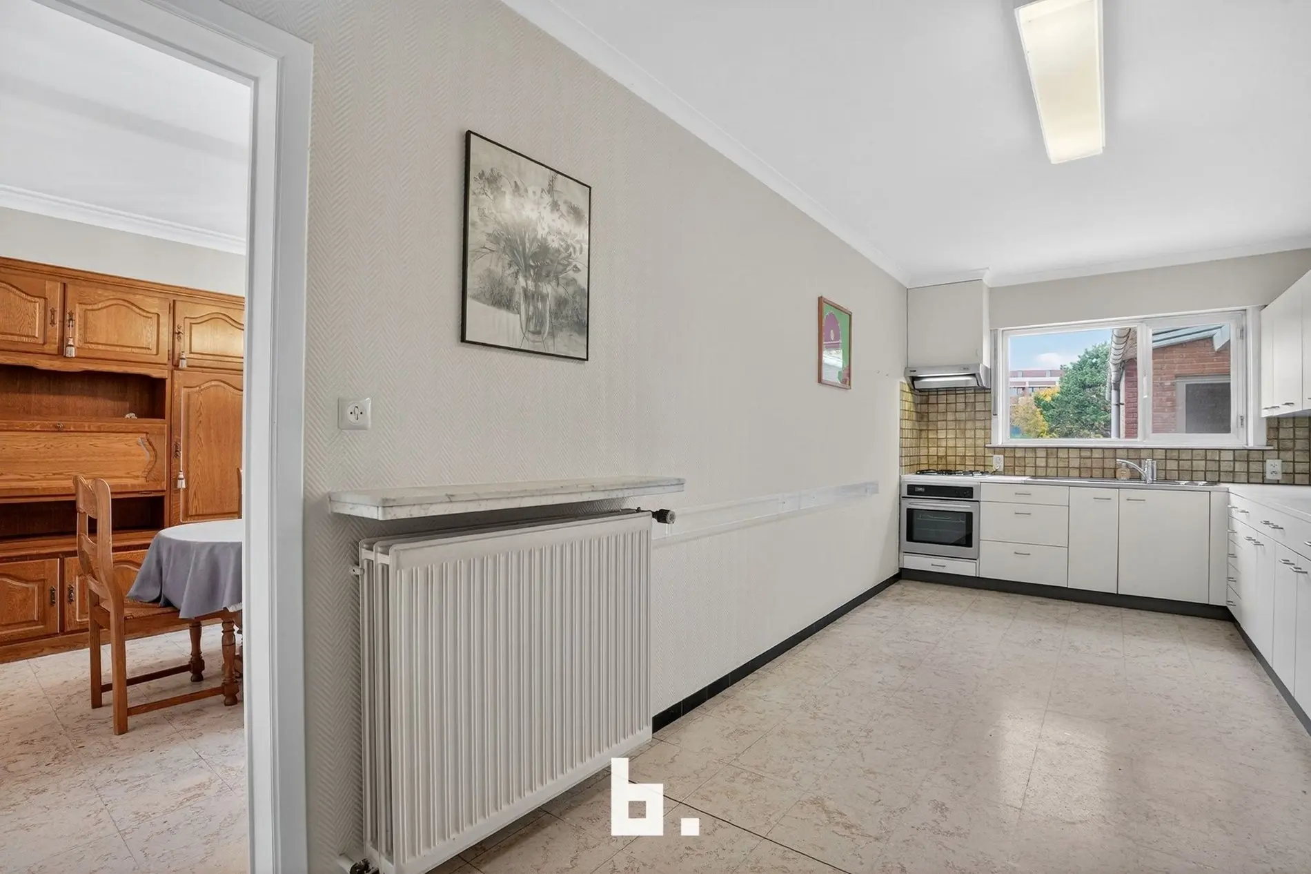 Bij het betreden van de woning wordt u verwelkomd in een lichtrijke leefruimte met een aangenaam uitzicht op het groen. Aansluitend bevindt zich de praktische en gezellige keuken, ideaal voor wie graag kookt en samenkomt.