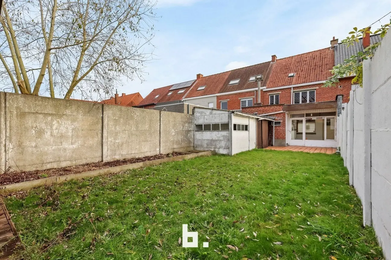 In een rustige straat dicht bij het centrum van Izegem en Emelgem bevindt zich deze, te renoveren, ruime en solide tussenwoning. De woning heeft een functionele indeling, heeft drie slaapkamers en extra leefruimte door de veranda. Bovendien is er een aparte toegang naar veranda en tuin. Dankzij de uitstekende verbinding met de E403 bereik je moeiteloos de omliggende steden. Alle voorzieningen zoals winkels, scholen en recreatie bevinden zich op korte afstand. Er is voldoende parkeerplaats in de straat.