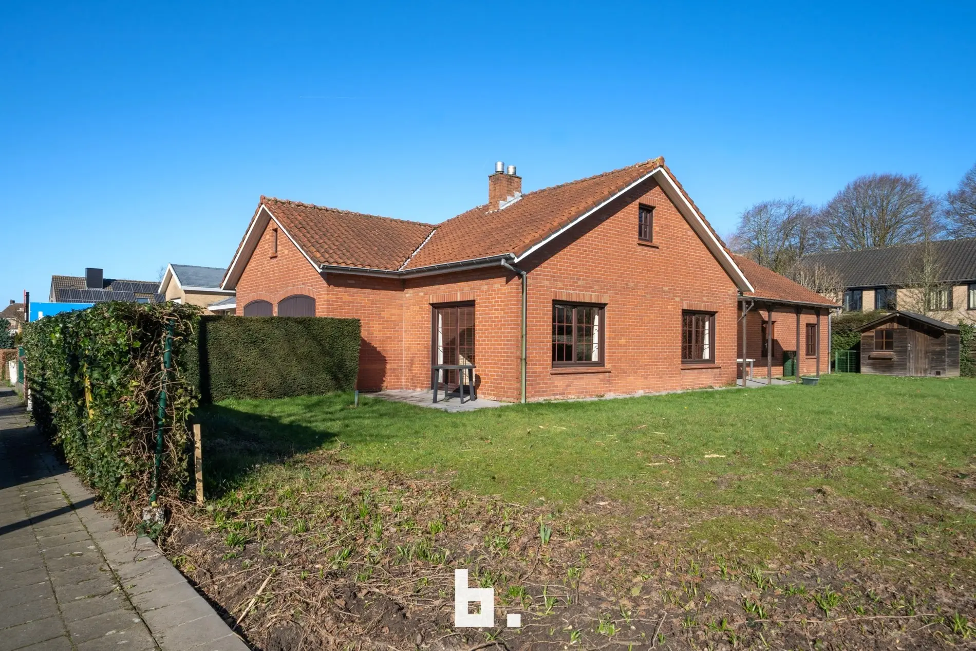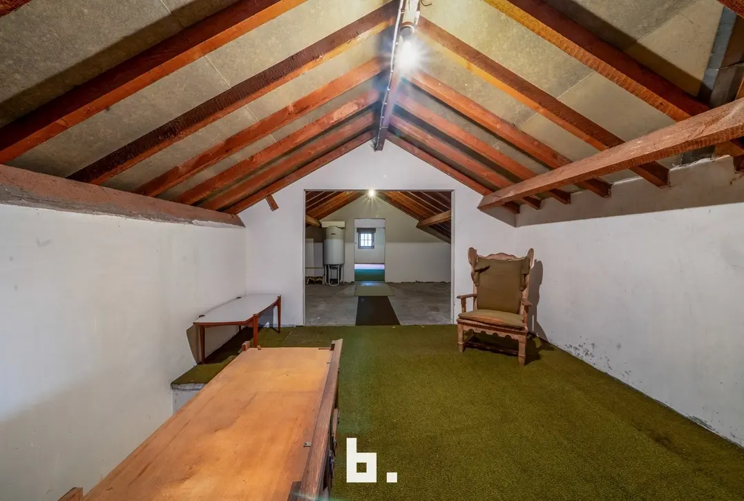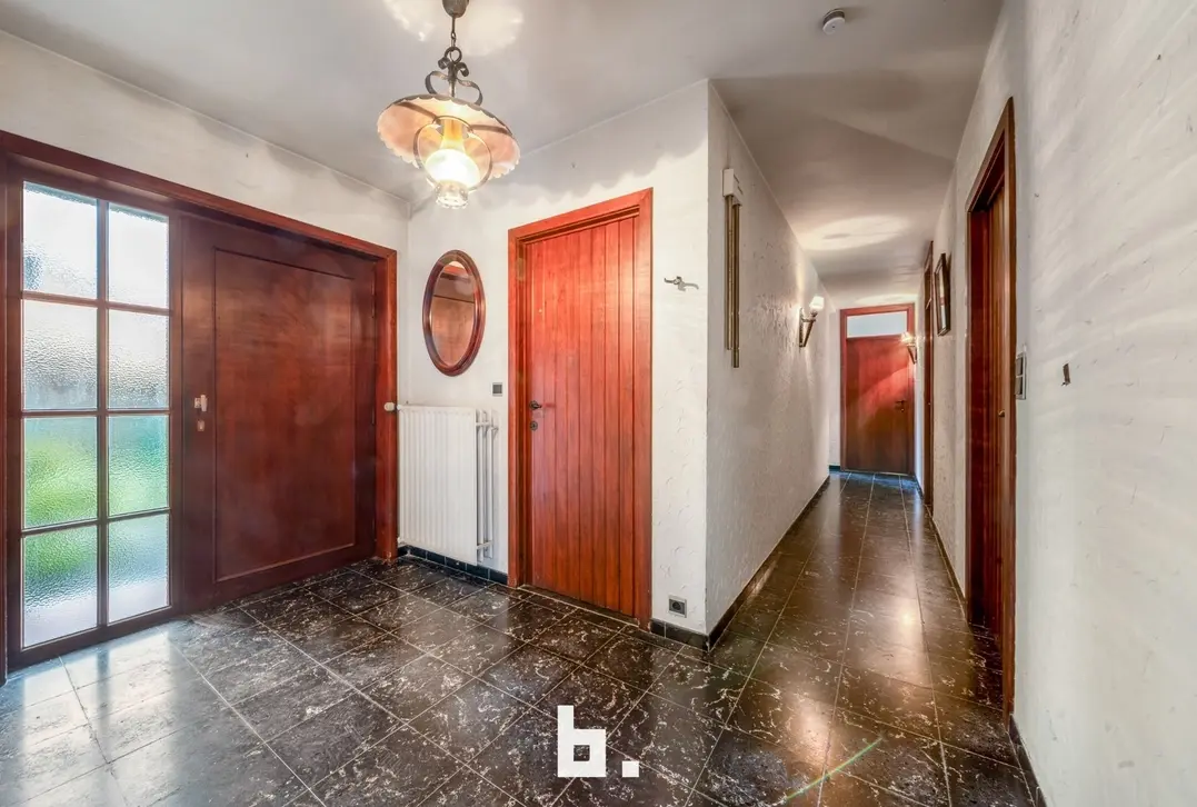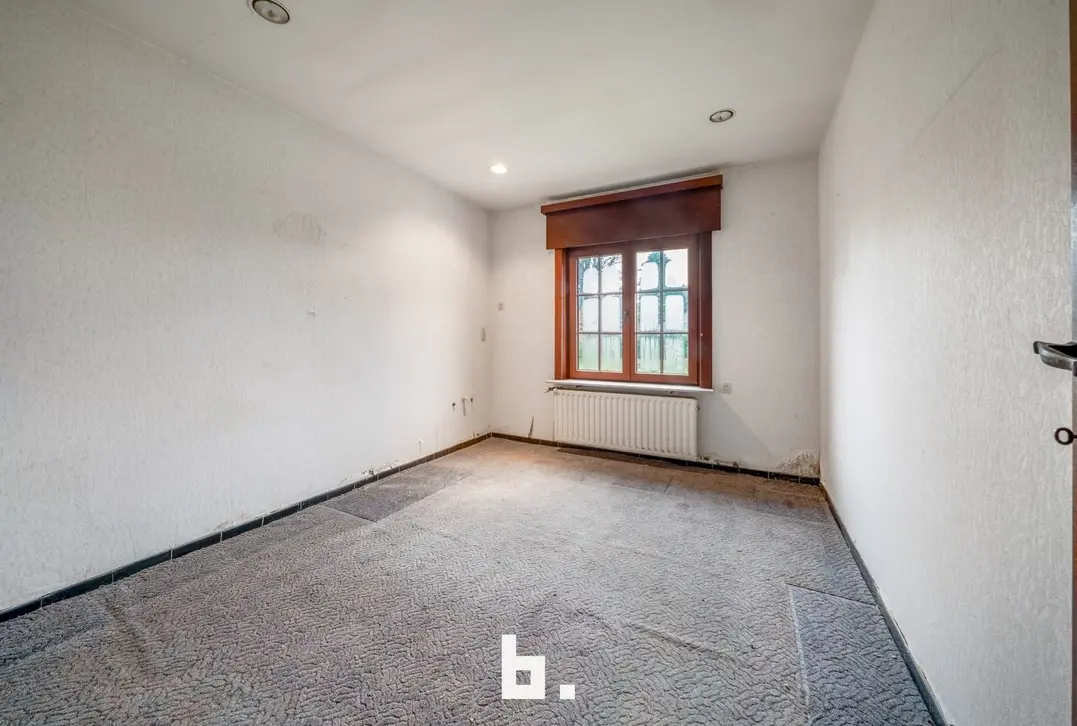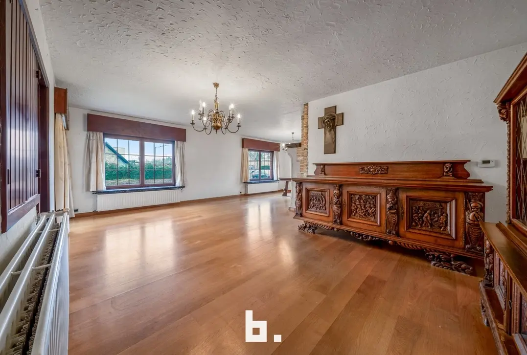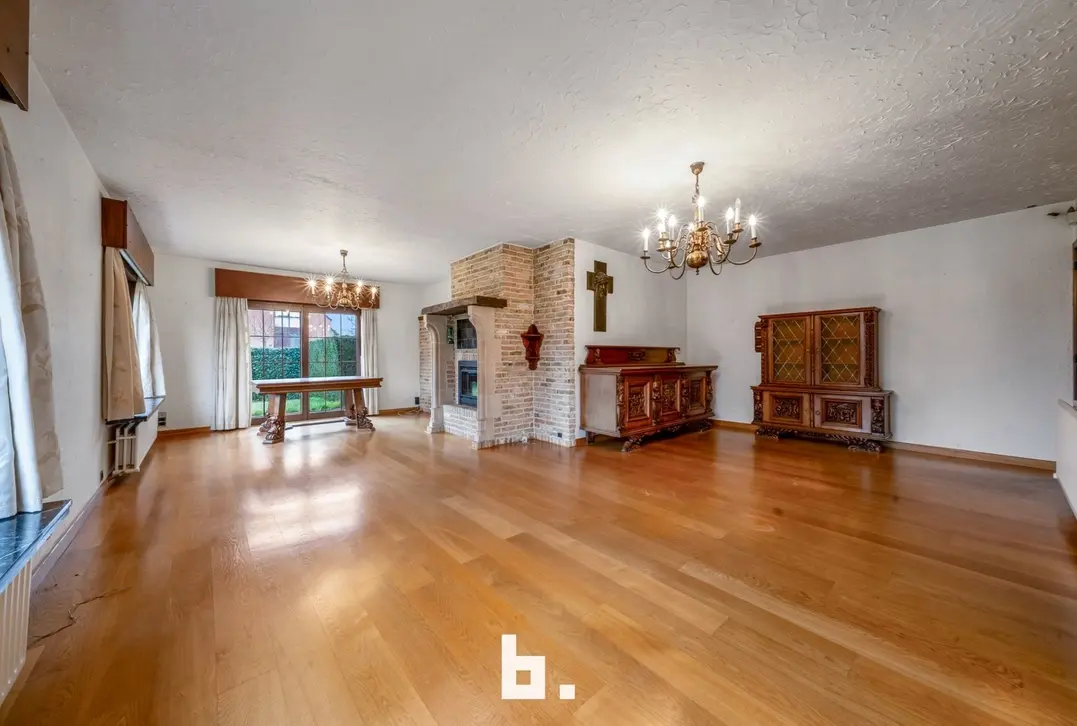 Deze te renoveren alleenstaande woning is rustig doch centraal gelegen in een gegeerde buurt vlakbij scholen, winkels, openbaar vervoer, Expresweg ... Het gaat om een open bebouwing op een mooi perceel van 510 m² met gelijkvloers comfort. De indeling is als volgt: BENEDENVERDIEPING: inkomhal, gastentoilet, bureau, gezellige woonkamer met veel natuurlijke lichtinval met houthaard, aparte keuken met eetmogelijkheid met aansluitend berging, 3 slaapkamers, badkamer (bad, wastafel en toilet), dubbele inpandige garage. ZOLDERVERDIEPING: vaste trap (mogelijkheid om kamers bij te creëren). BUITENOMGEVING: oprit voor twee wagens, aangename tuin rondom rond de woning, terras, tuinhuis.