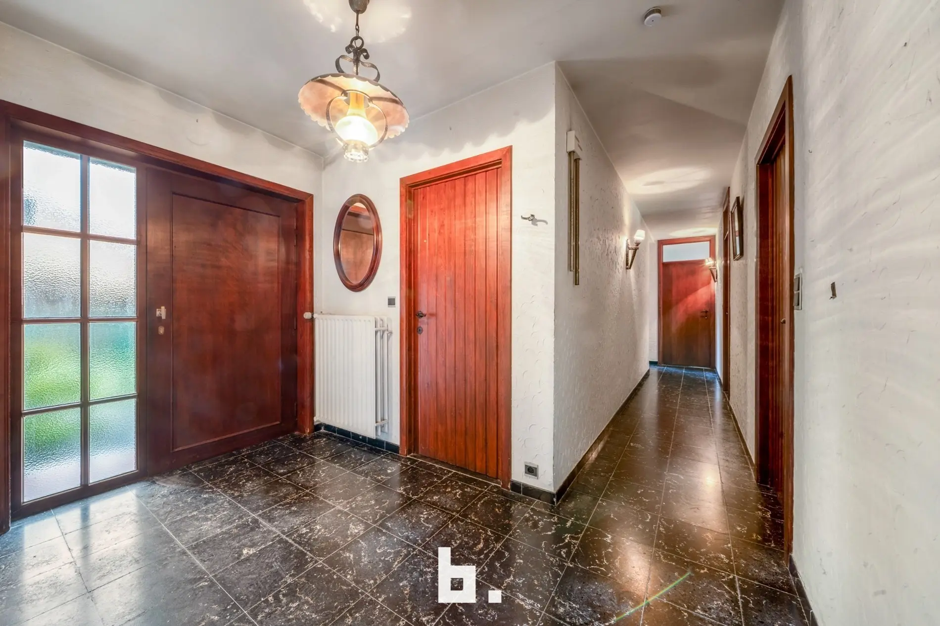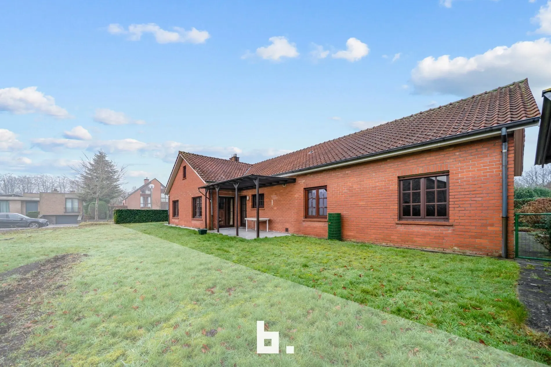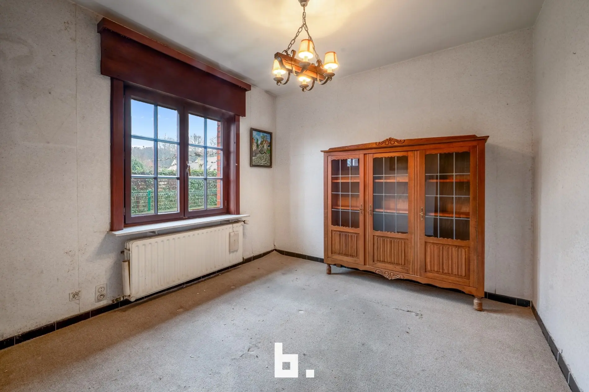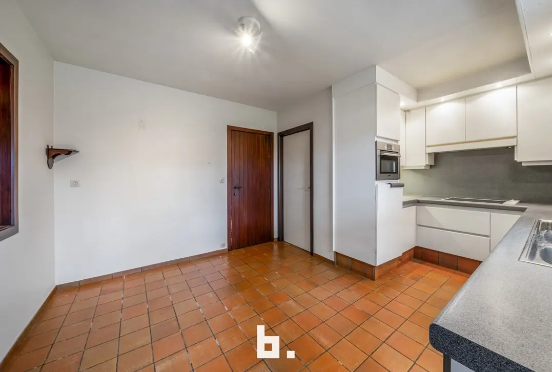 Deze te renoveren alleenstaande woning is rustig doch centraal gelegen in een gegeerde buurt vlakbij scholen, winkels, openbaar vervoer, Expresweg ... Het gaat om een open bebouwing op een mooi perceel van 510 m² met gelijkvloers comfort. De indeling is als volgt: BENEDENVERDIEPING: inkomhal, gastentoilet, bureau, gezellige woonkamer met veel natuurlijke lichtinval met houthaard, aparte keuken met eetmogelijkheid met aansluitend berging, 3 slaapkamers, badkamer (bad, wastafel en toilet), dubbele inpandige garage. ZOLDERVERDIEPING: vaste trap (mogelijkheid om kamers bij te creëren). BUITENOMGEVING: oprit voor twee wagens, aangename tuin rondom rond de woning, terras, tuinhuis.