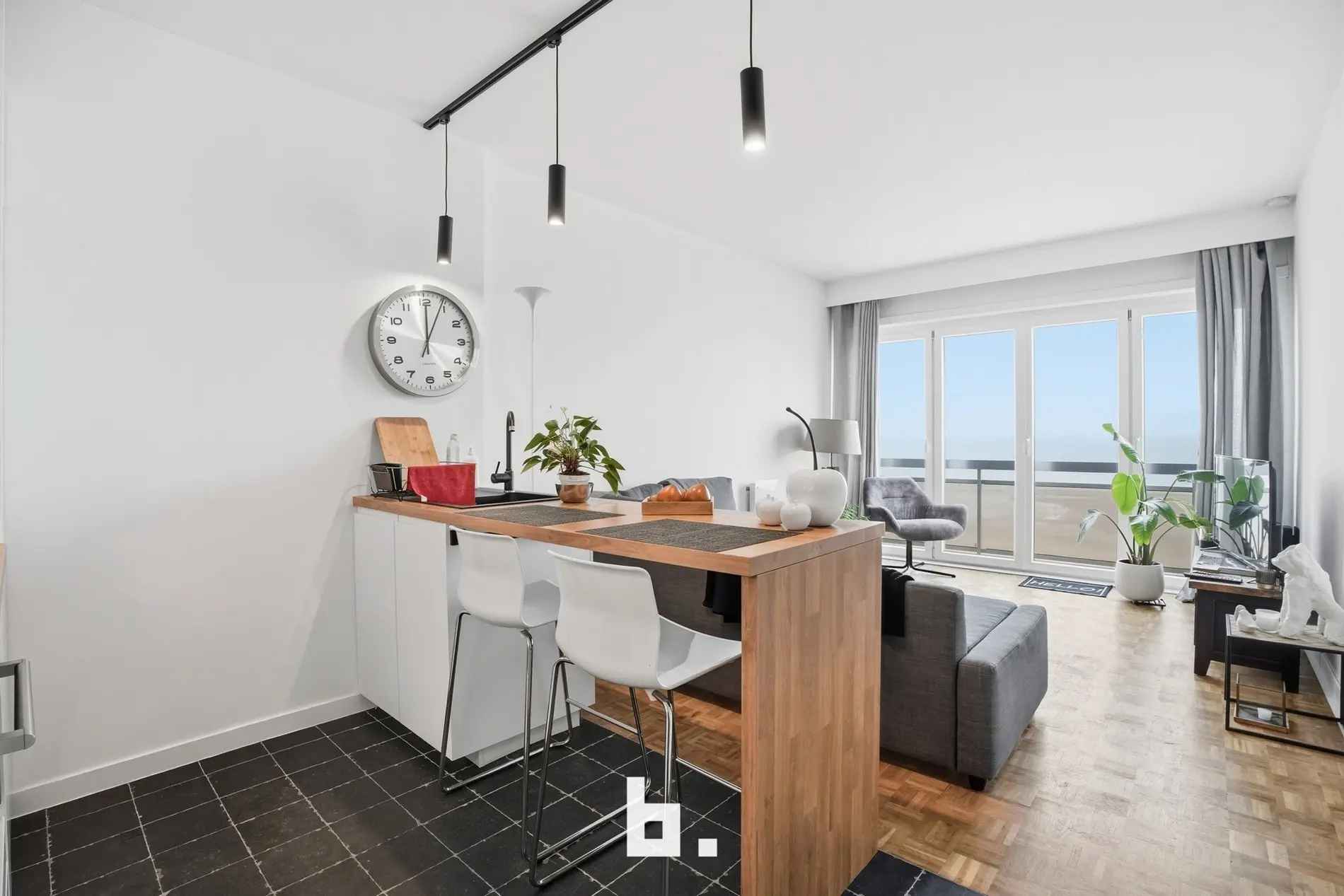 Ontdek deze charmante studio van 41 m² met frontaal zeezicht, ideaal gelegen op de dijk van Middelkerke. Geniet elke dag van het rustgevende uitzicht op zee en het strand, recht vanuit je woonruimte.