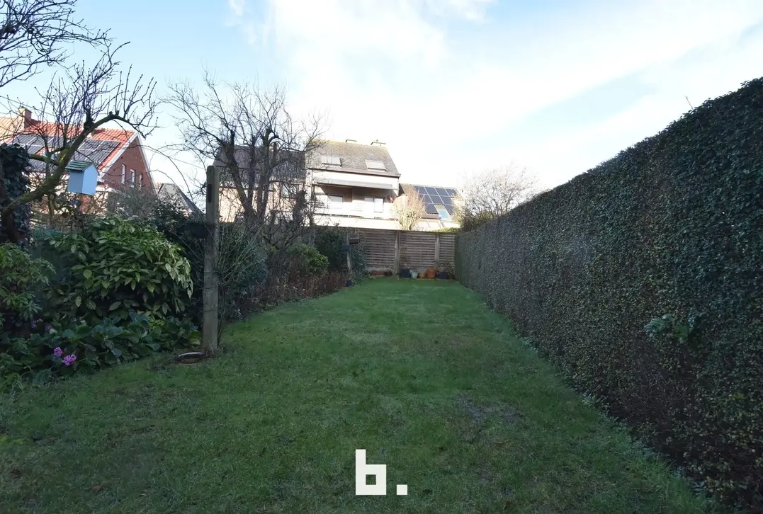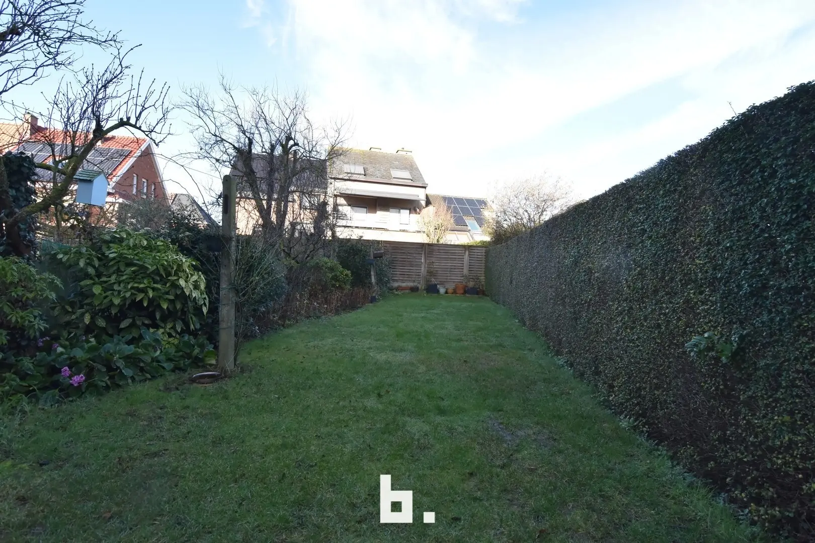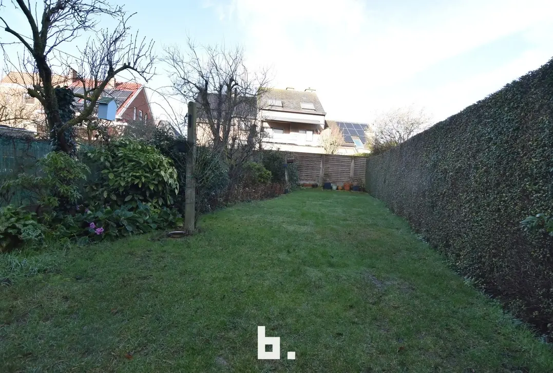 Deze woning beschikt op het gelijkvloers over een inkomhal met toegang tot de garage met oprit, twee praktische bergingsruimtes en een ruime, zonnige tuin.