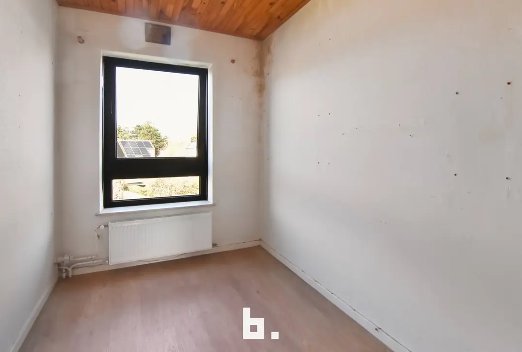 De tweede verdieping omvat één ruime slaapkamer, een badkamer en drie bijkomende slaapkamers, perfect voor een gezin of thuiswerkruimte.