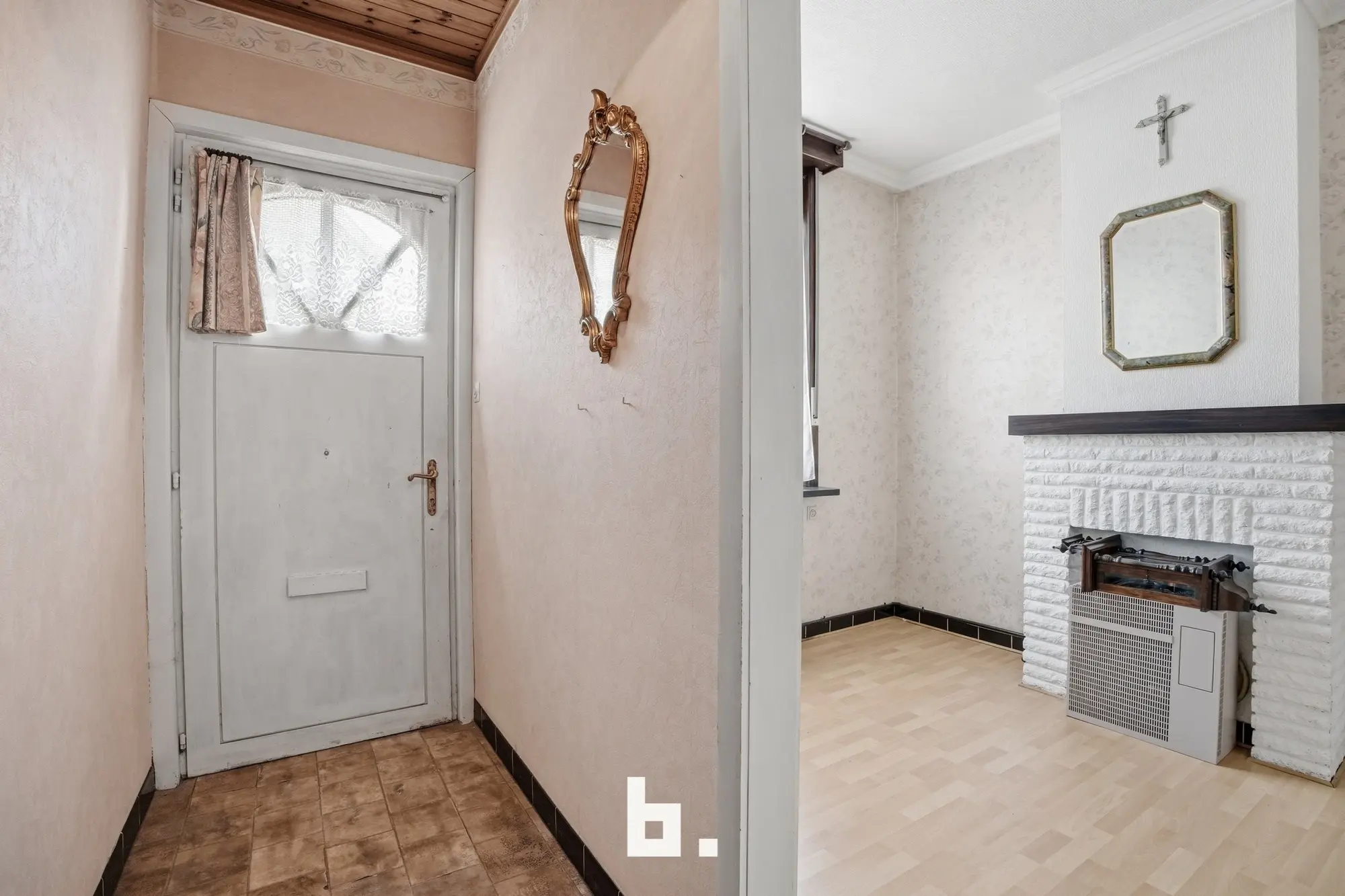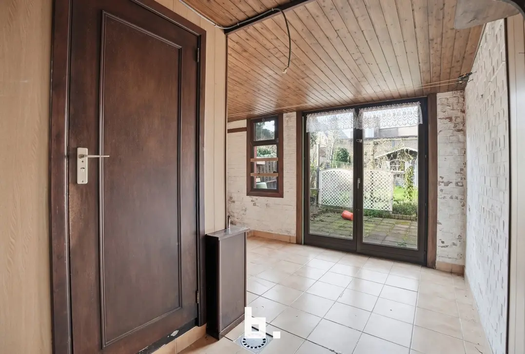 Via de inkomhal betreden we op het gelijkvloers een ruime voorplaats, ideaal in te richten als bureau, hobbyruimte of extra slaapkamer. Verder beschikt de woning over een gezellige leefruimte, een praktische keuken en een badkamer. Achteraan bevindt zich een veranda met zicht op de zonnige tuin, een aangename plek om te ontspannen en te genieten van het buitenleven.