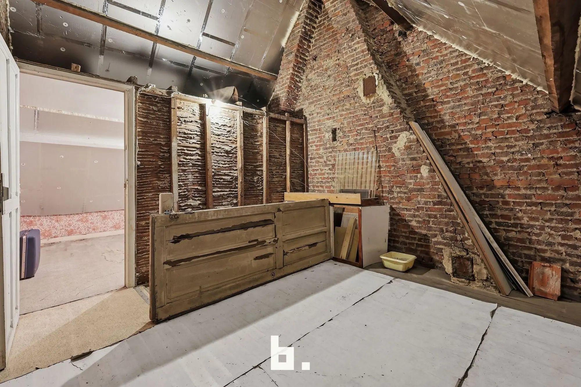 op het eerste verdiep hebben we twee slaapkamers en een trap die toegang geeft tot de zolder waar nog twee slaapkamers gemaakt kunnen worden.