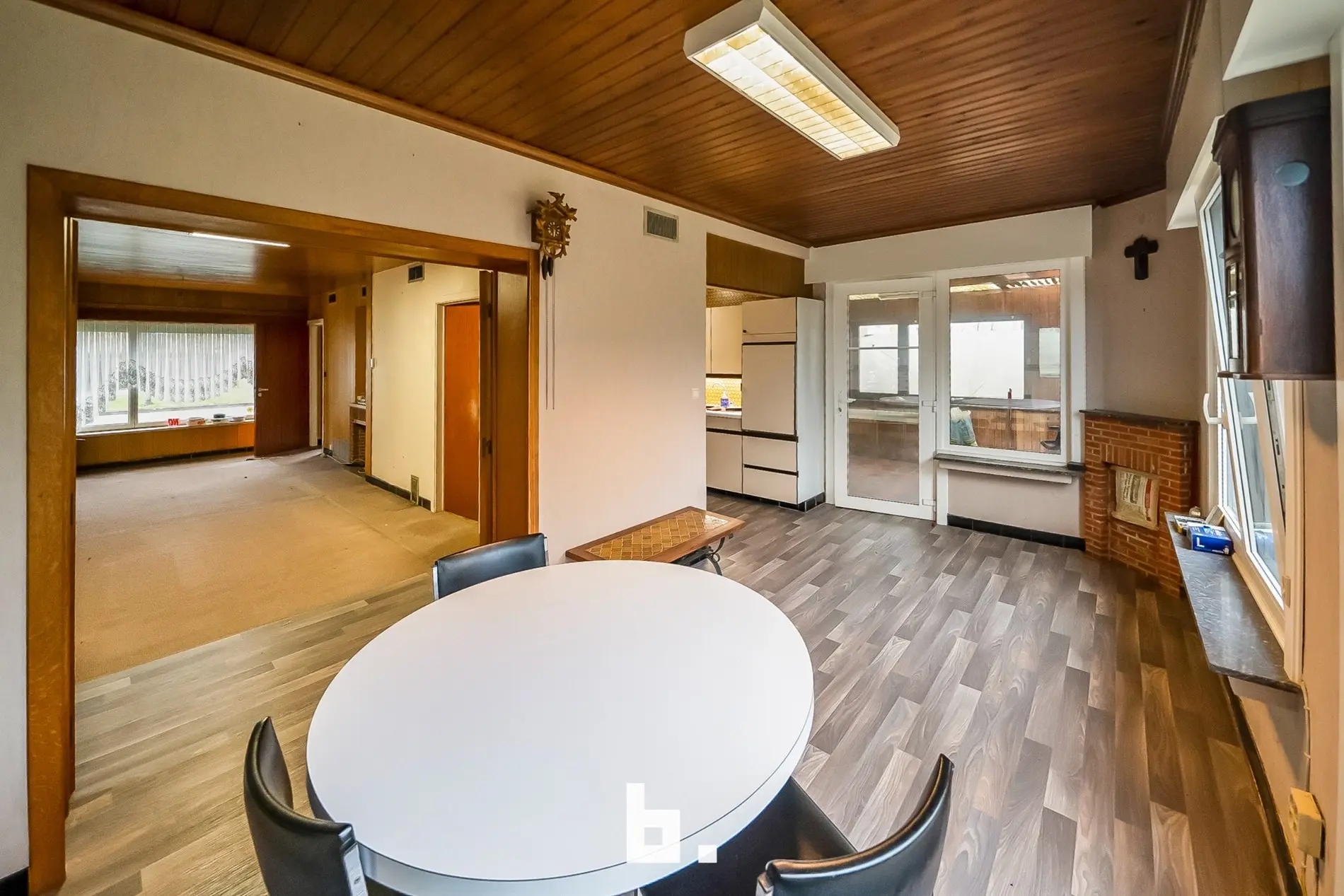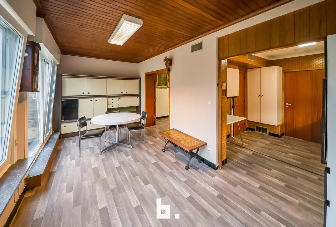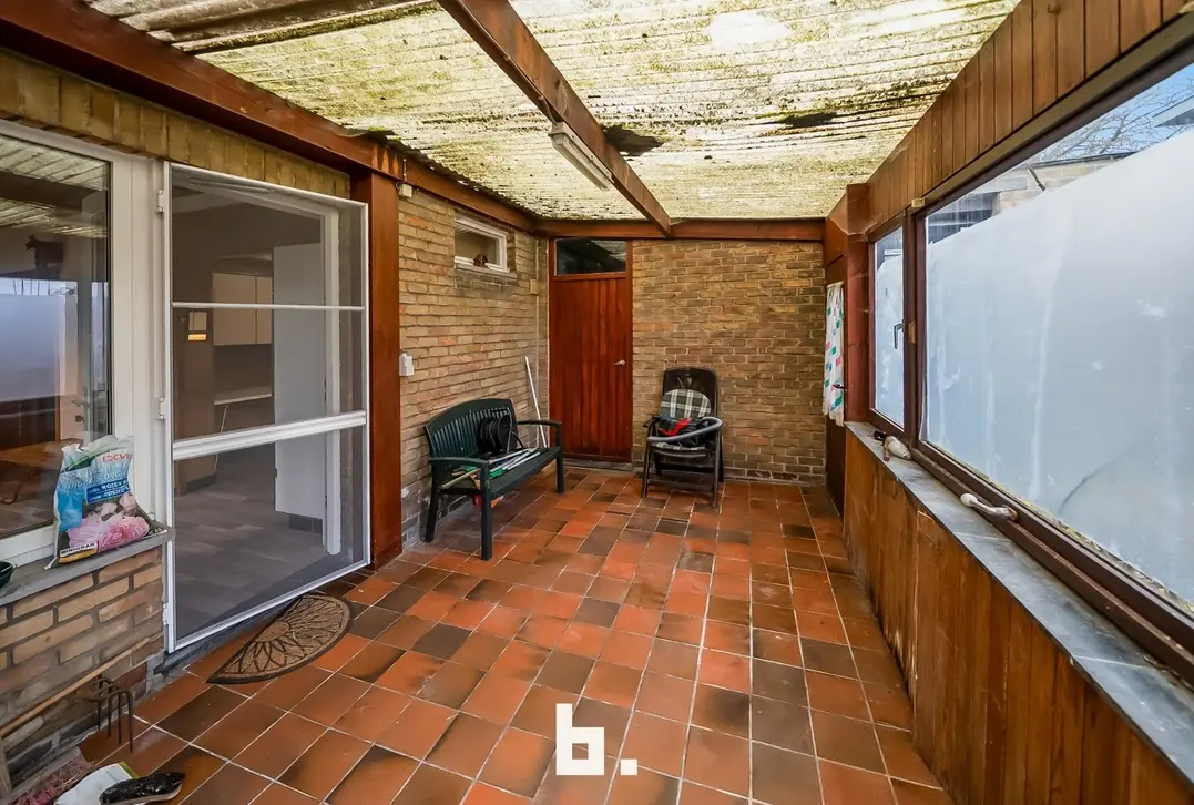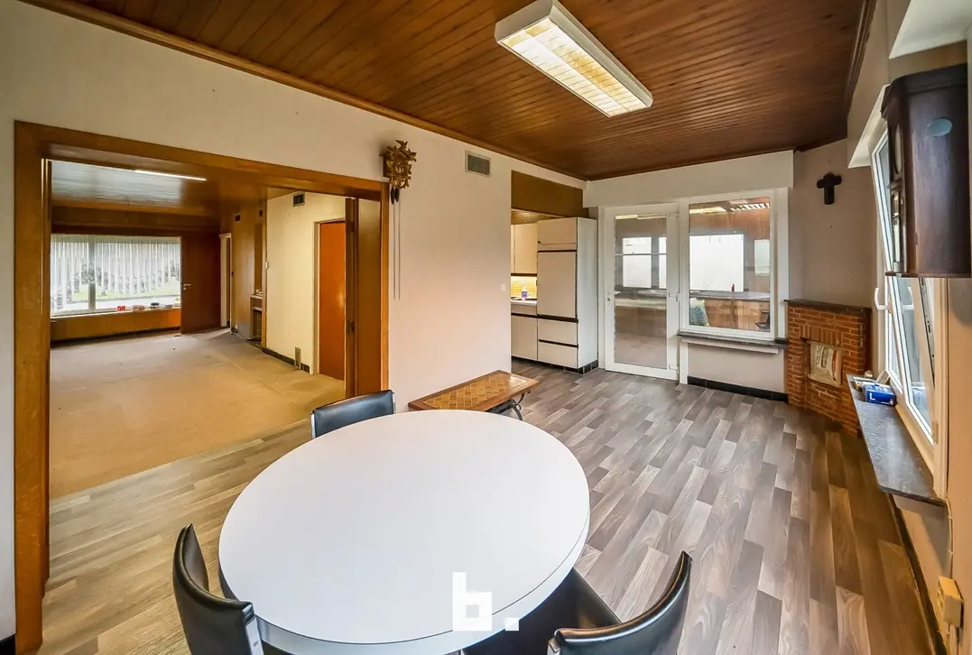 Deze te renoveren woning bevindt zich in een rustige residentiele woonwijk op enkele minuten van de Brugse binnen stad. De indeling is als volgt: BENEDENVERDIEPING: Inkomhal, leefruimte, ruime eetplaats, keuken en veranda met zicht op de tuin en dubbele garage. BOVENVERDIEPING: badkamer met douche en ligbad en 3 slaapkamers.