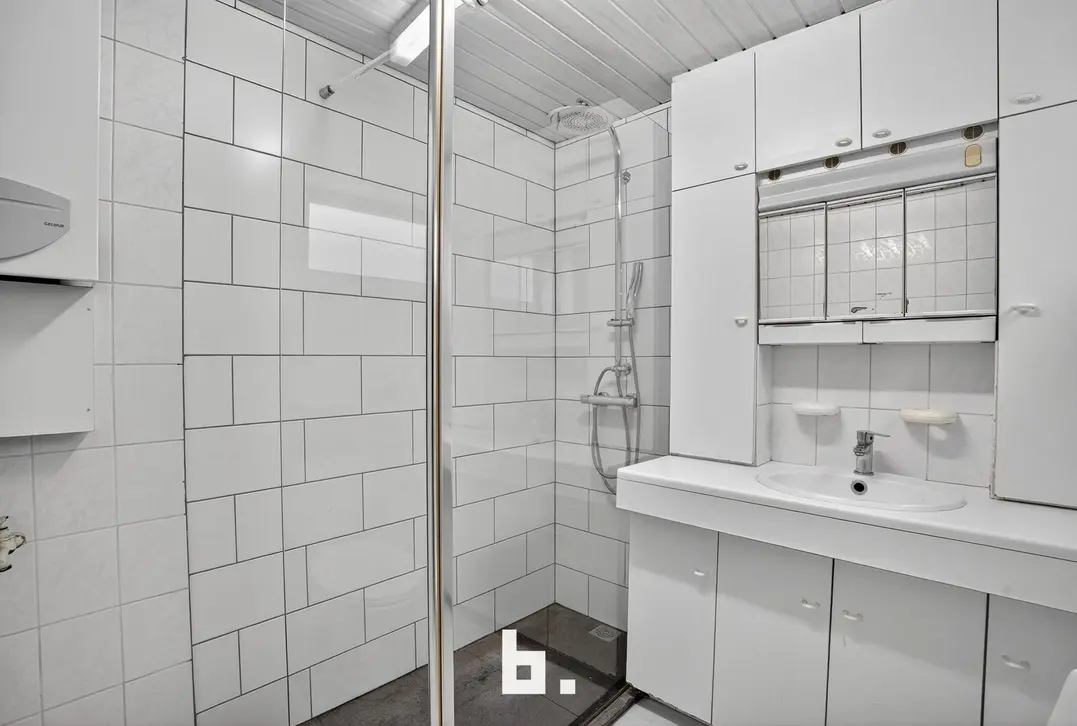 Indeling: inkom met trap, eet- en leefruimte, keuken, badkamer met toilet en inloopdouche, ruime overdekte koer met aansluitingen voor was- en droogkast.