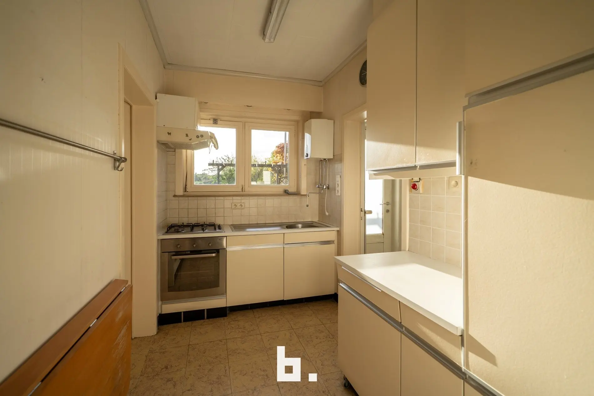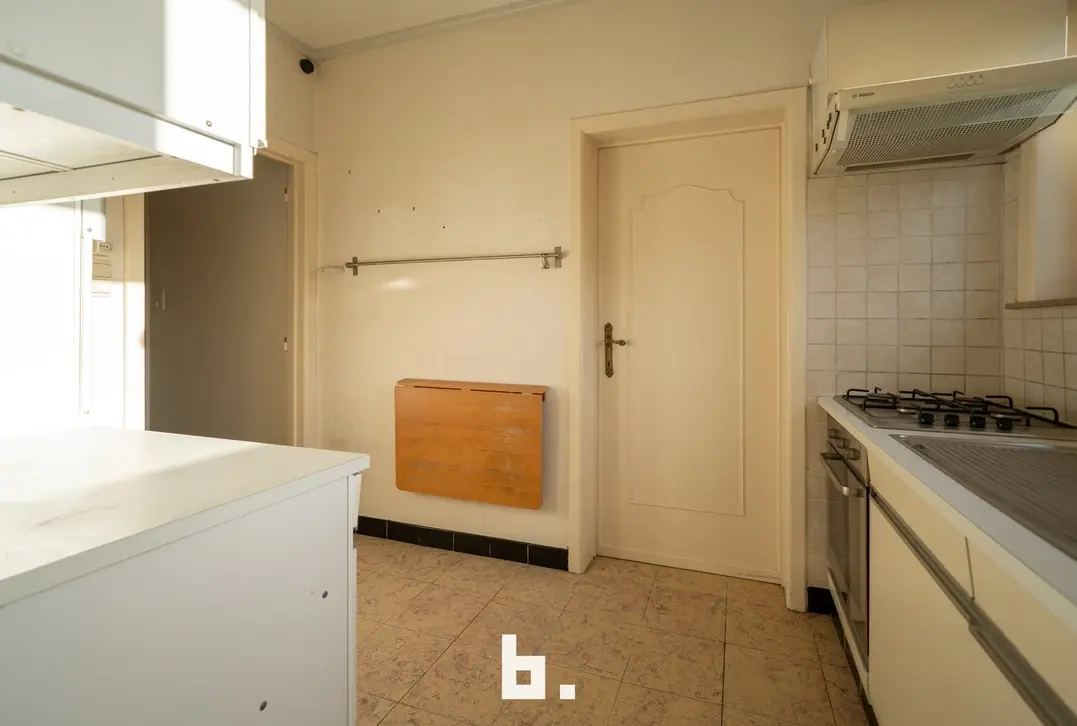 Uitstekend gelegen te renoveren woning te Sint-Michiels met uitzicht op de velden. In de nabijheid van alle invalswegen, winkels, station. De indeling is als volgt: BENEDENVERDIEPING: Inkop, living, keuken, berging, wc, garage, zonnige tuin met uitzicht op de velden. BOVENVERDIEPING: 2 slaapkamers, badkamer met douche, badkamer met ligbad. ZOLDERVERDIEPING: Vaste trap naar zolder met mogelijkheid voor een extra slaapkamer.