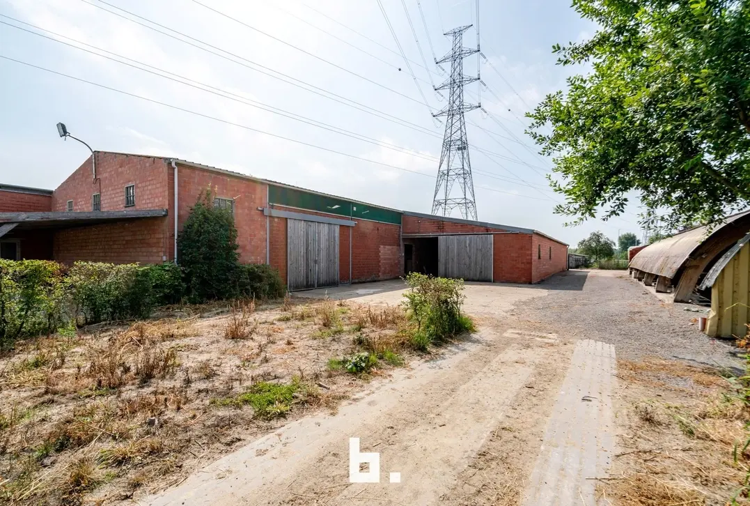 Praktische loods met houten booggebinte, ideaal voor opslag van machines – dak deels vernieuwd en asbestvrij