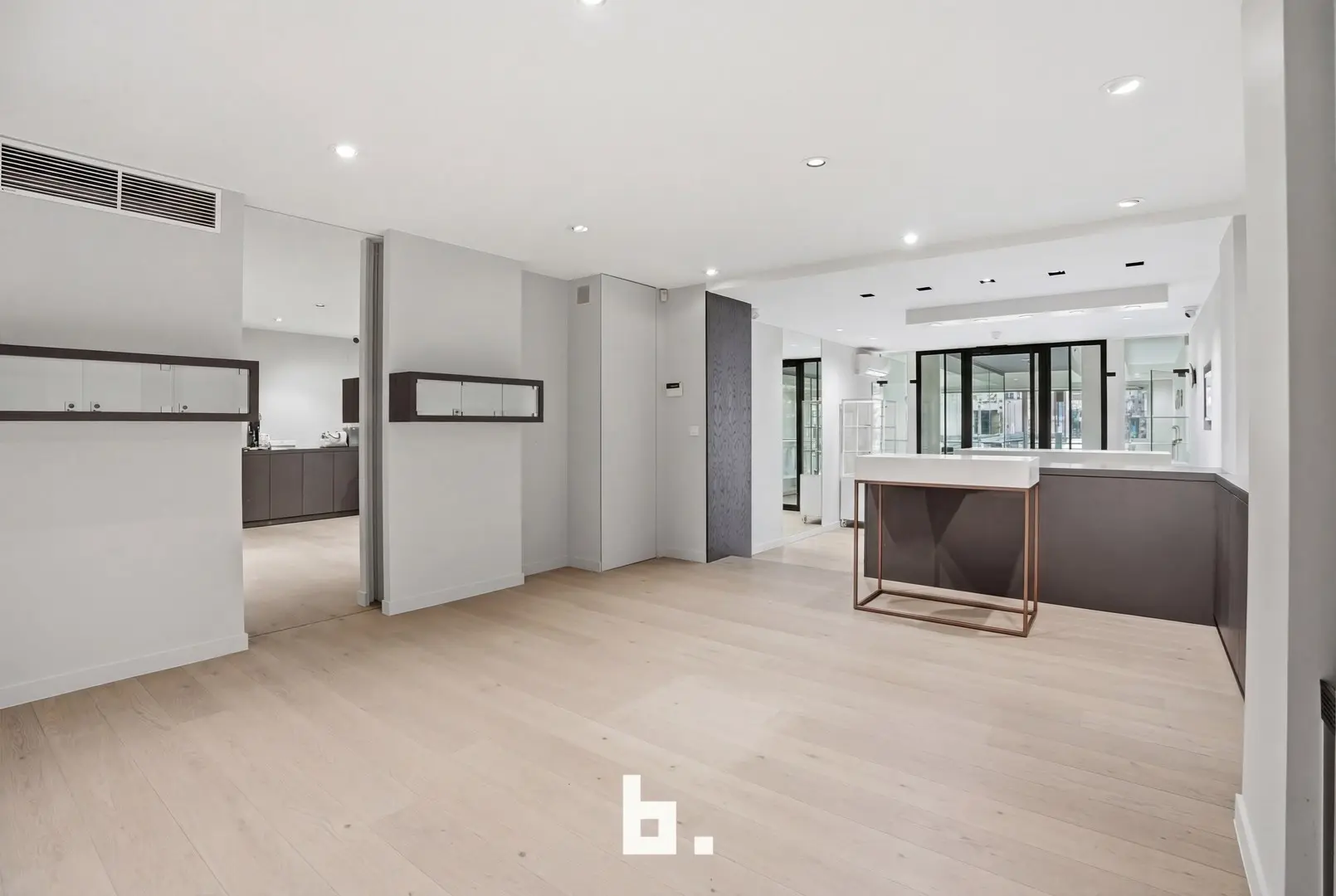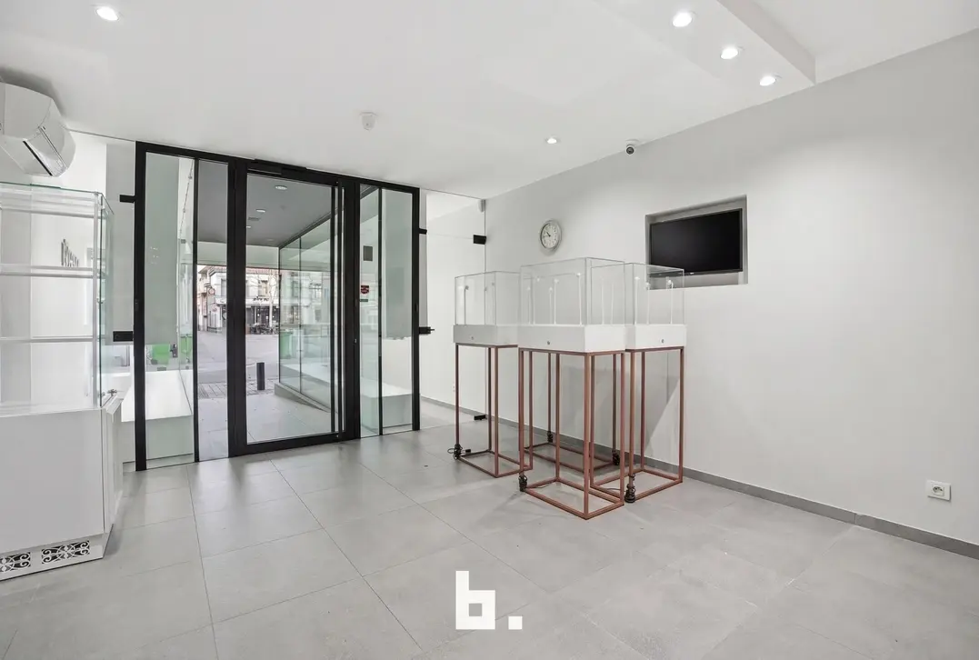 De handelsruimte op het gelijkvloers is momenteel ingericht als juwelierszaak en beschikt over een grote etalage die zorgt voor uitstekende visibiliteit. Dankzij de centrale ligging en het levendige marktplein is dit pand perfect geschikt voor detailhandel, een vrij beroep of een andere commerciële activiteit.