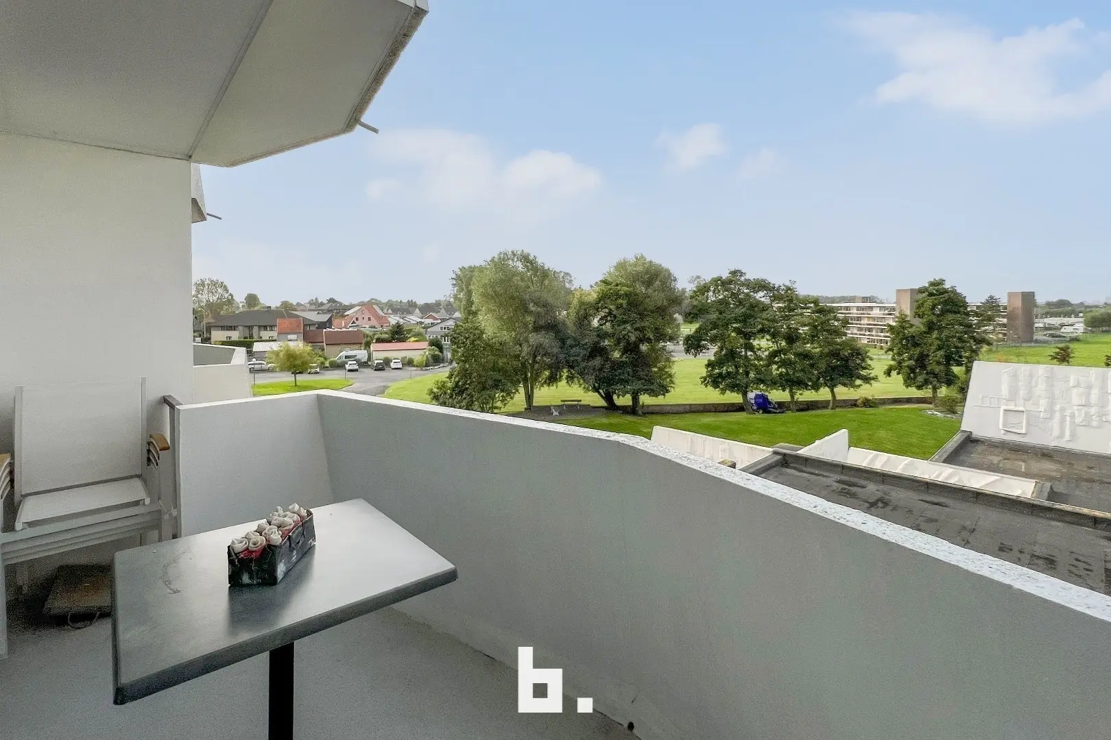 Dit volledig gerenoveerd 2 slaapkamer appartement met ruime terrassen voor- en achteraan bevindt zich op de 3e verdieping en is gelegen in een groene omgeving. Mooie ligging op wandelafstand van de zee en golf te De Haan. De indeling is als volgt: inkom, woonkamer met aanpalend terras met prachtig open zicht, nieuwe open keuken, badkamer (douche, wastafelmeubel, toilet), 2 slaapkamers uitgevend op een terras met mooi open zicht. Er is een gemeenschappelijke privatieve parking voorzien voor de residentie, alsook een zeer ruime privé kelder. TOPPER voor de snelle beslissers!