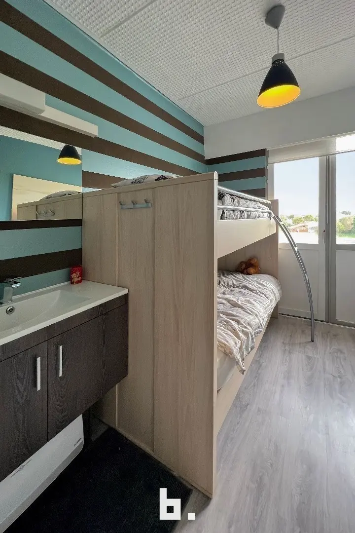 Dit volledig gerenoveerd 2 slaapkamer appartement met ruime terrassen voor- en achteraan bevindt zich op de 3e verdieping en is gelegen in een groene omgeving. Mooie ligging op wandelafstand van de zee en golf te De Haan. De indeling is als volgt: inkom, woonkamer met aanpalend terras met prachtig open zicht, nieuwe open keuken, badkamer (douche, wastafelmeubel, toilet), 2 slaapkamers uitgevend op een terras met mooi open zicht. Er is een gemeenschappelijke privatieve parking voorzien voor de residentie, alsook een zeer ruime privé kelder. TOPPER voor de snelle beslissers!