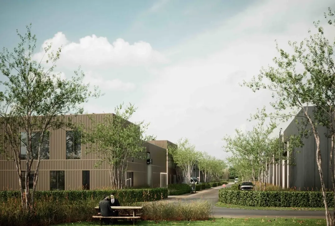 - incl. afwerking park (oa. groenaanleg, wegenis, verkeersborden, totem), incl. nutsvoorzieningen tot
