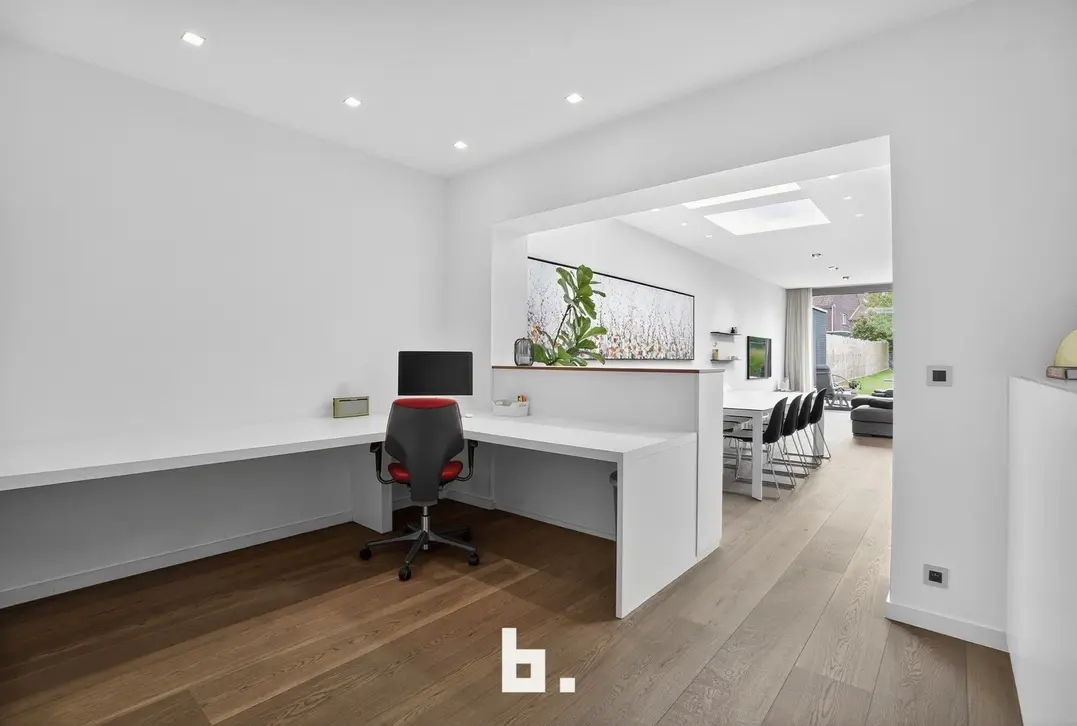 De lichtrijke leefruimtes vloeien harmonieus over in elkaar en bieden een gevoel van openheid en gezelligheid. De moderne keuken en praktische bijkeuken maken koken en leven comfortabel, terwijl het aparte bureau ideaal is voor wie thuiswerkt of studeert. Met vier ruime slaapkamers, én de mogelijkheid om een vijfde kamer of extra badkamer in te richten, groeit deze woning mee met uw noden.