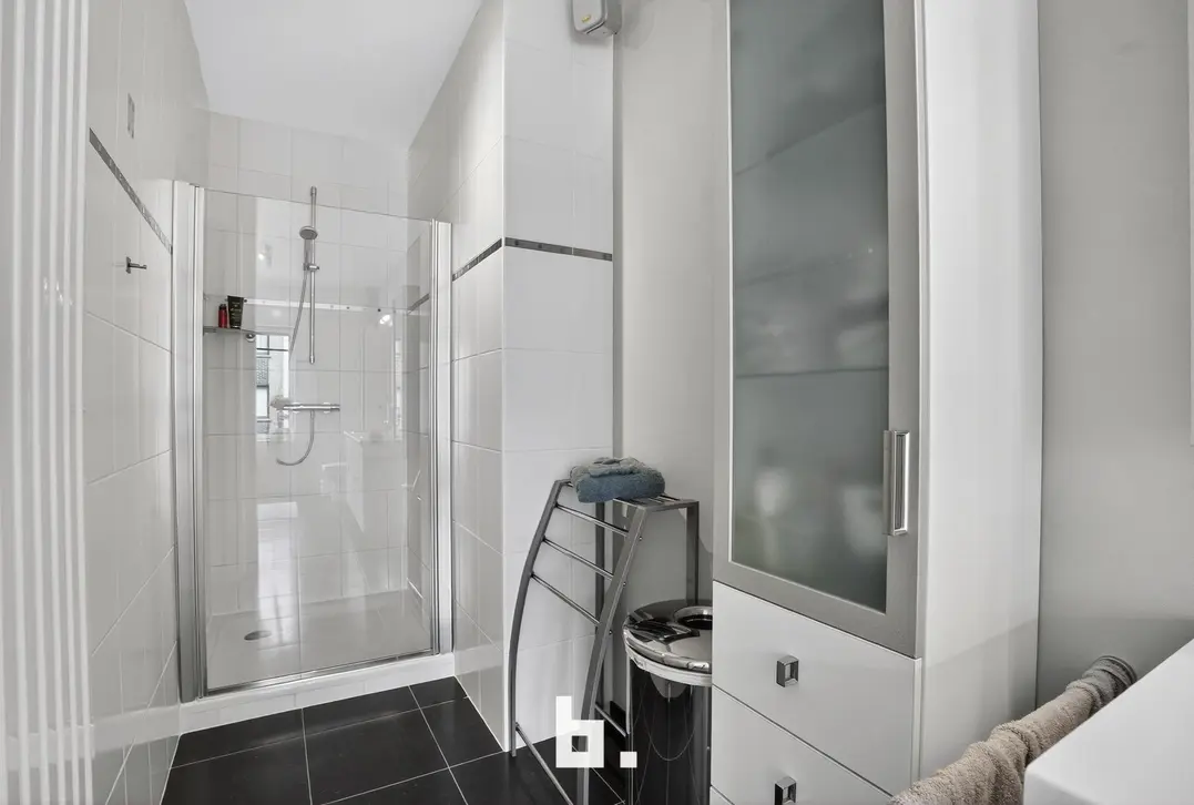 De badkamer is een echt pareltje: uitgerust met een dubbele wastafel, een douche, een ruim bad en een toilet. Daarnaast zijn overal ingewerkte kasten voorzien, die voor extra opbergruimte en een strakke afwerking zorgen. De zuidgerichte tuin met groot terras vormt een rustige oase, perfect om te ontspannen of om vrienden te ontvangen.