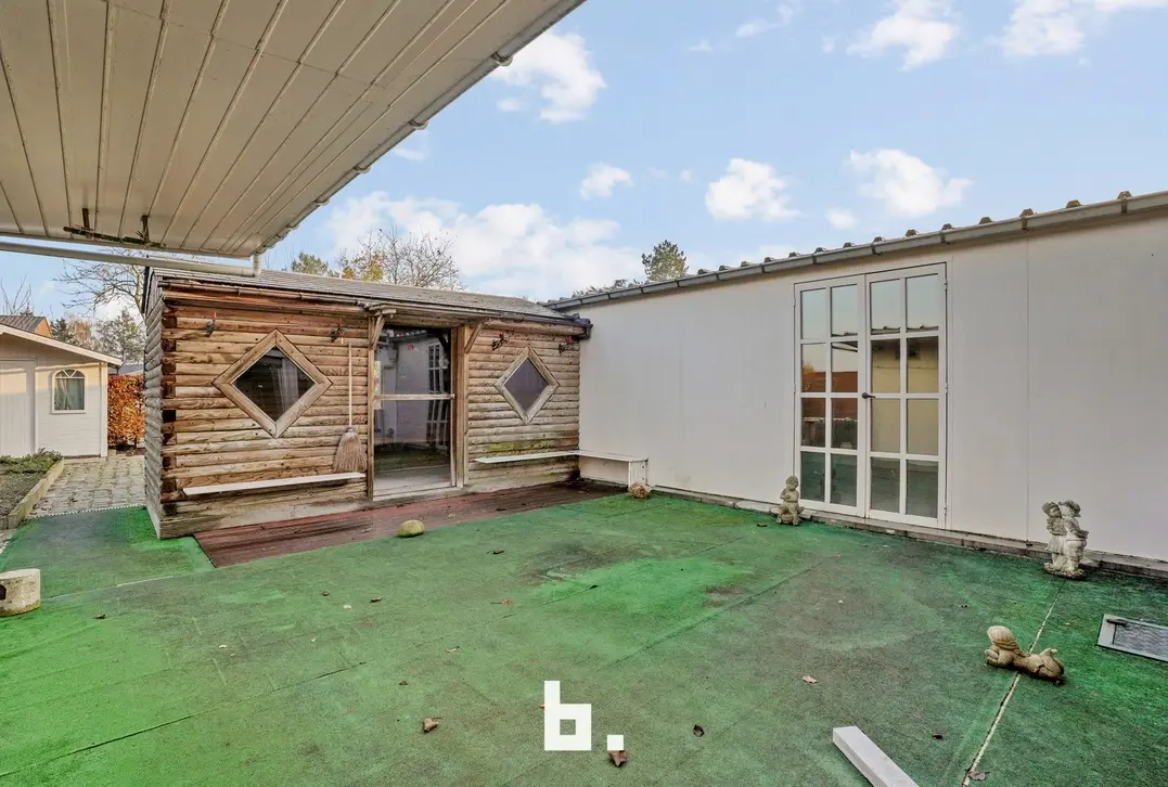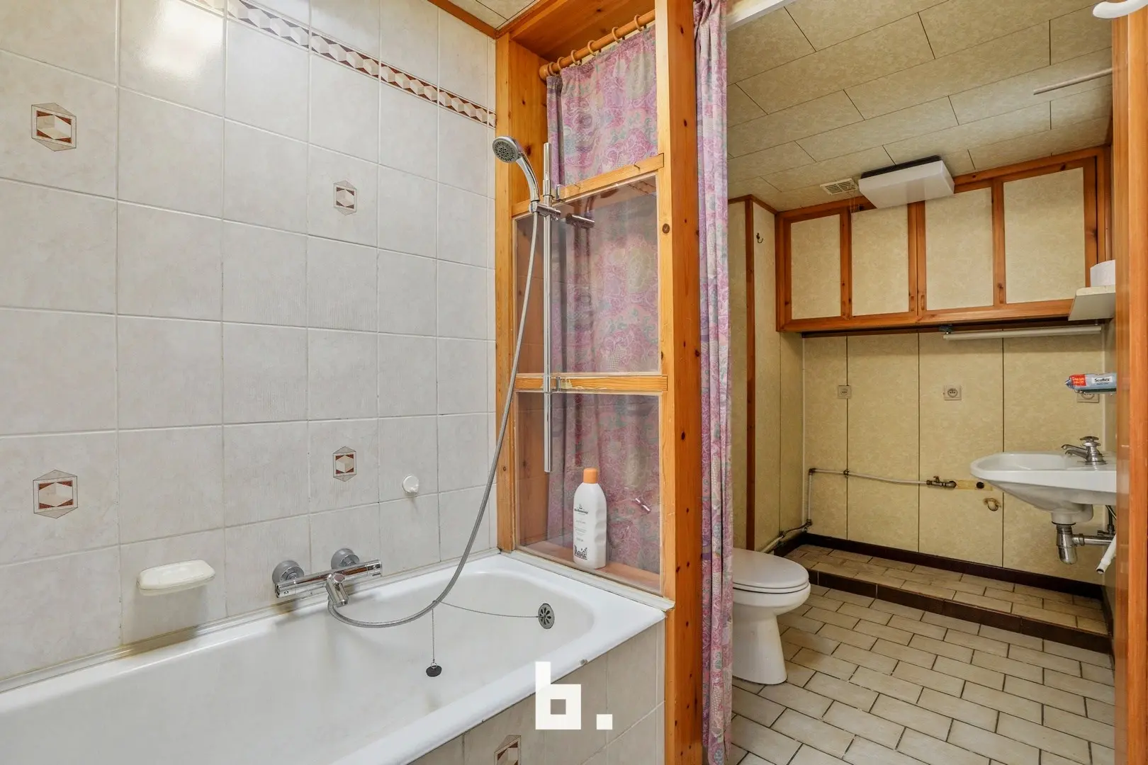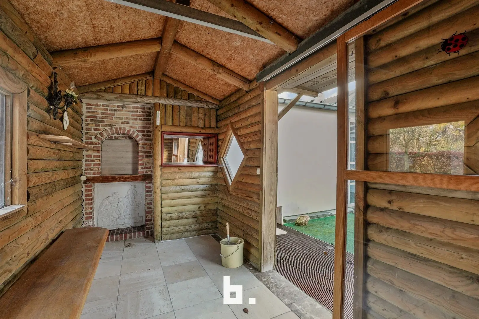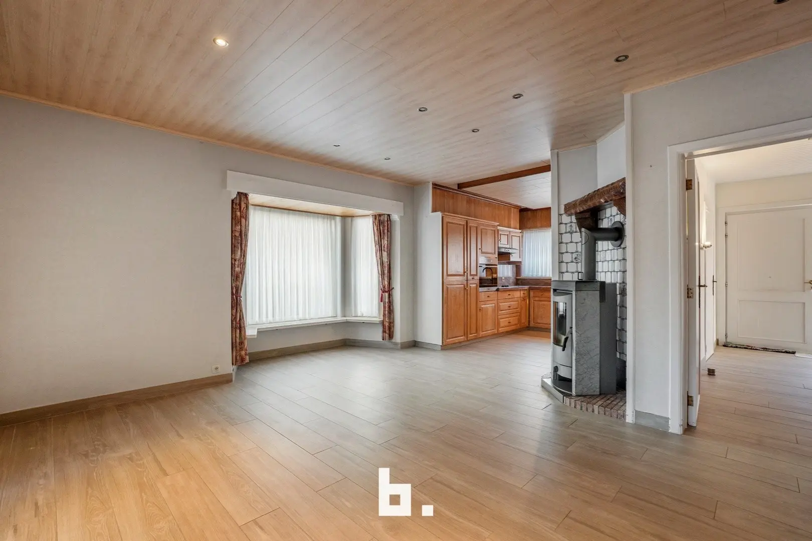 Op het gelijkvloers bevindt zich een inkom- en traphal met apart toilet, een lichtrijke leefruimte met een gezellige houtkachel en voldoende ruimte voor zowel een zithoek als een eetplaats, een aparte keuken en een badkamer. Op de bovenverdieping zijn er drie volwaardige slaapkamers. Buiten vind je een leuke tuin met tuinberging en bovendien beschikt de woning over twee garages, wat een grote troef is voor wie extra opslag- of parkeerruimte nodig heeft.